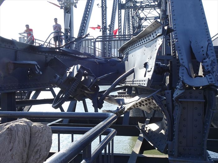 この橋は、船舶が通行できるように中央部が旋回する可動橋だったのだと。