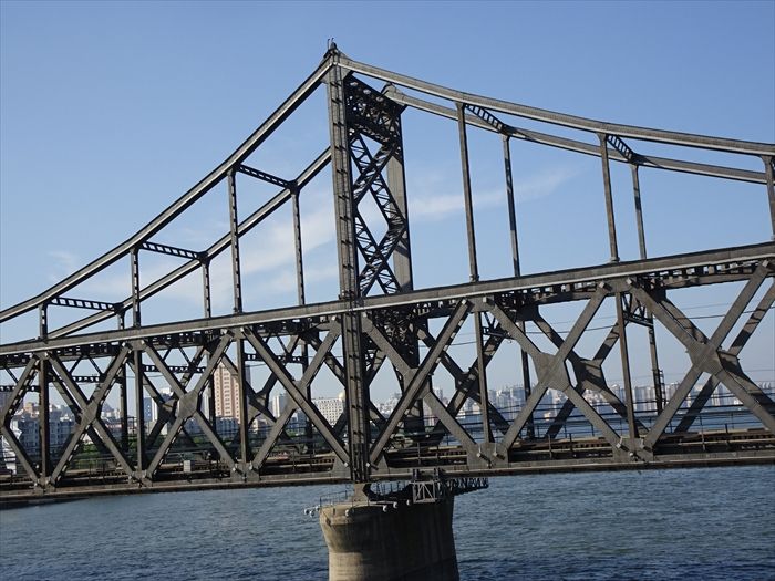 中国と北朝鮮の国境である鴨緑江に京義線の「鴨緑江橋梁」として建設された。