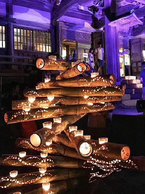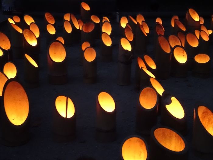 幻想的なライトアップと 繊細な細工の竹灯籠。