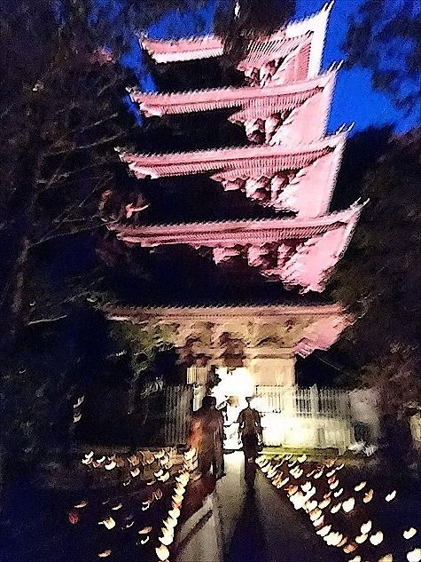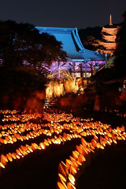 仁王門から五重塔までの境内には、青竹で作られた灯籠約5000基が並べられていた
