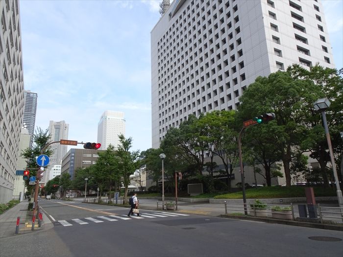 『横浜税関前』交差点から『神奈川県警察本部』ビル方面を見る。