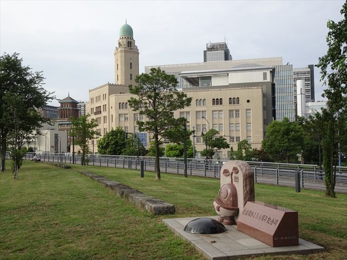 開国博Y150マスコットキャラクター「たねまる」を御影石で復元した記念碑で