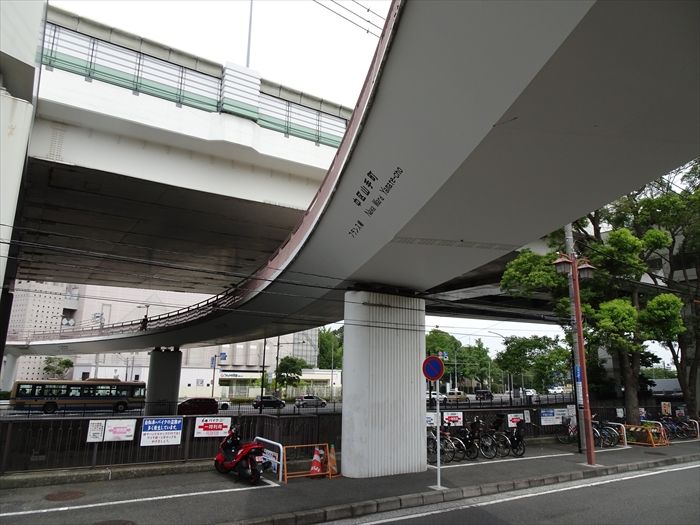 下を流れる川は『堀川』そしてその上には『首都高速神奈川3号狩場線』が。