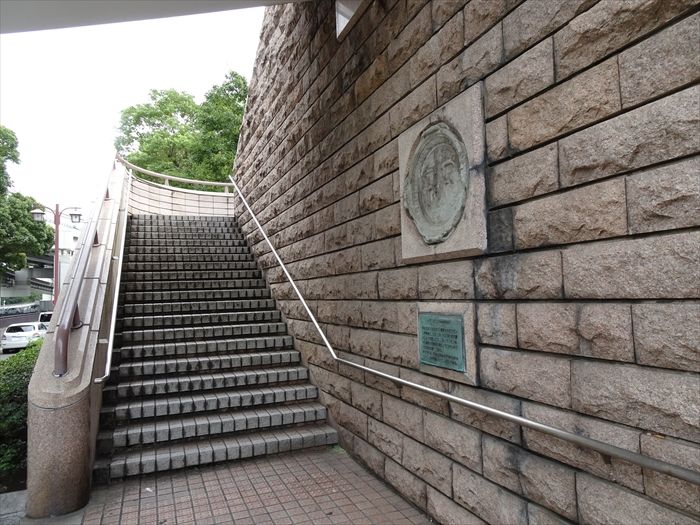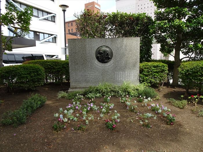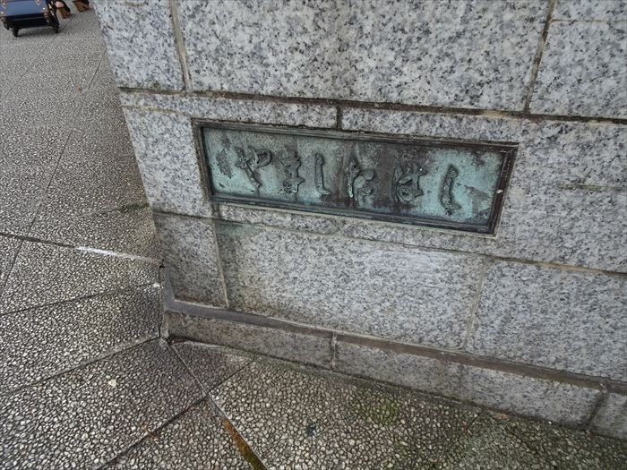 旧社屋のあった山下町に小さなひざ丈もないほどの記念碑が建っていた。