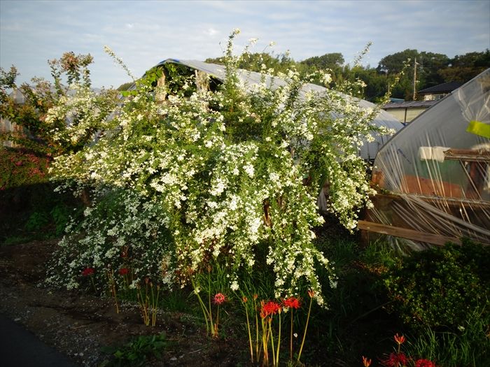 そして我が家の前の畑の角にも『シロバナマンジュシャゲ』が満開。