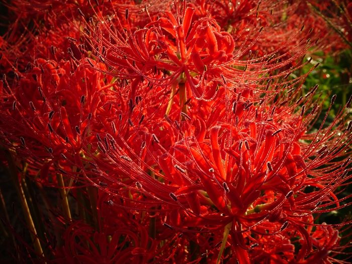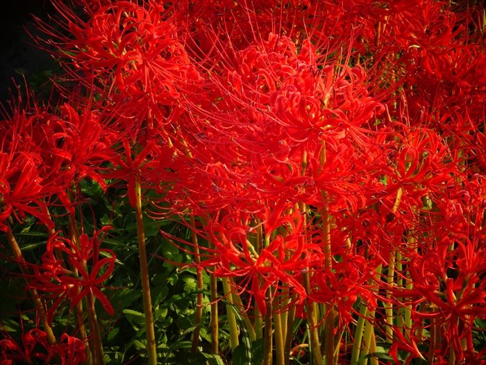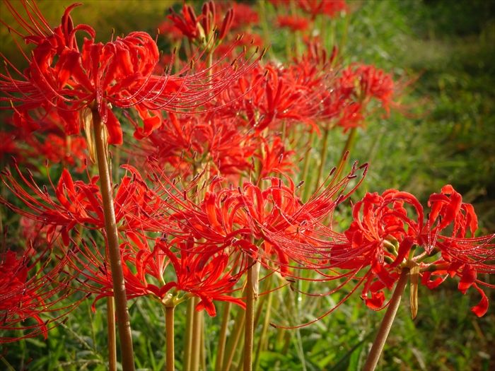 彼岸花は、その印象的な赤い花色から「情熱」「思うのはあなた一人」といった花言葉が