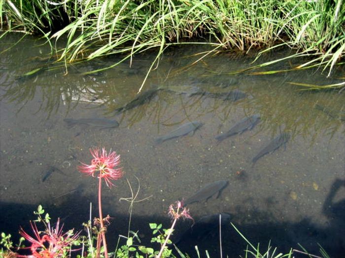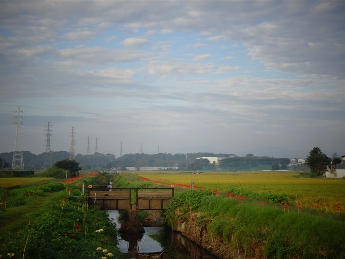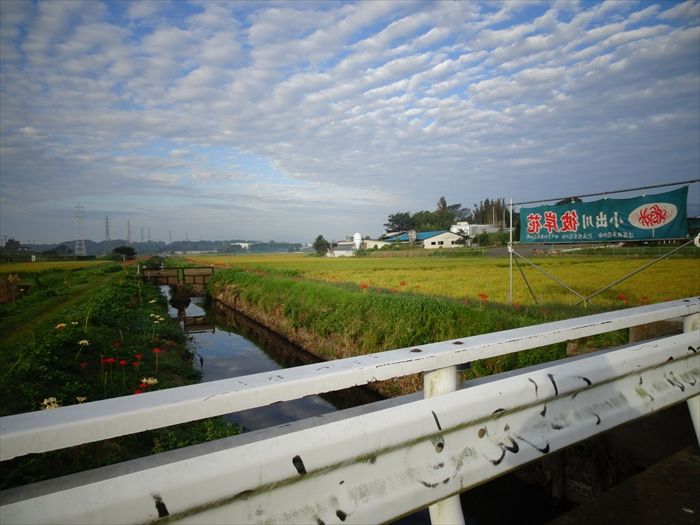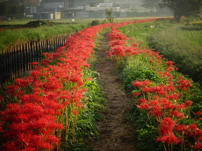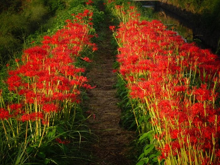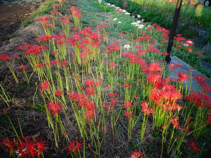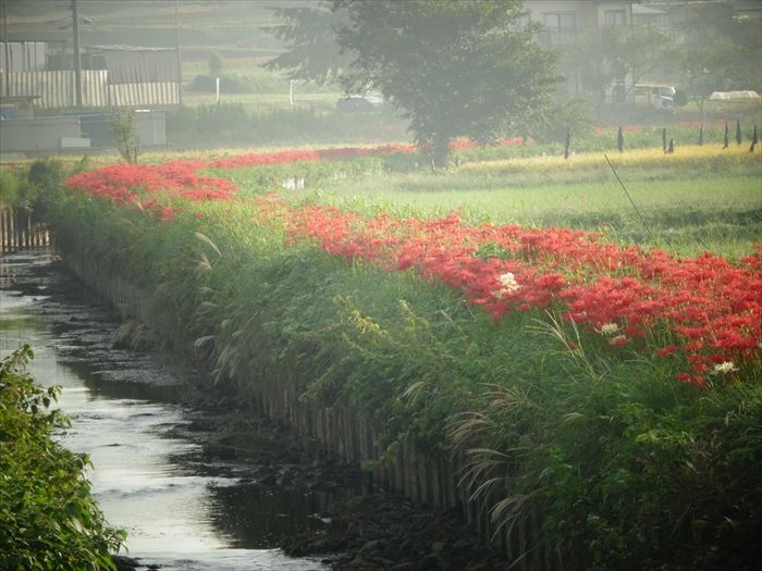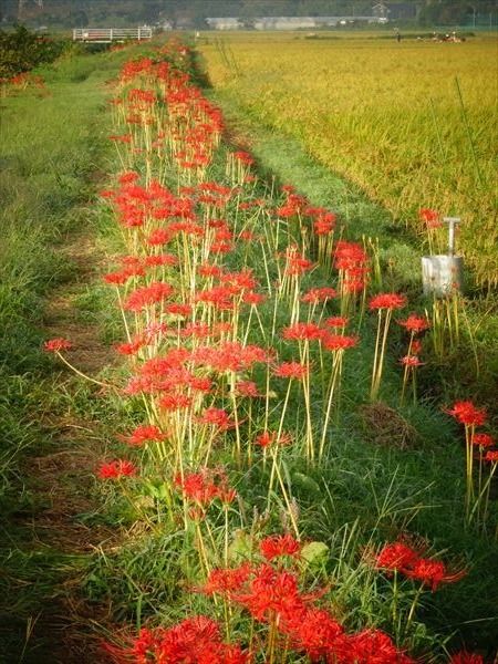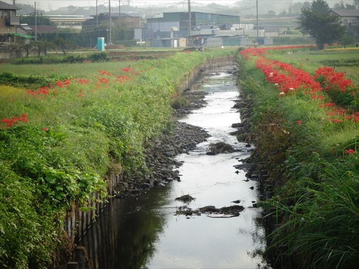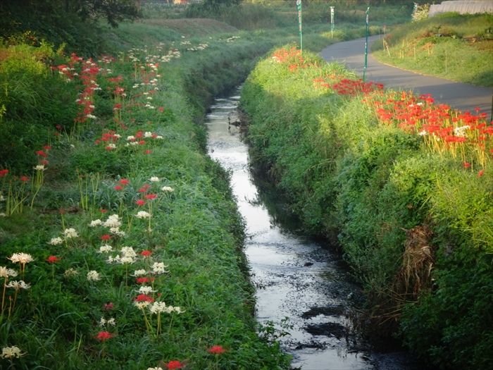 よって彼岸花は、よくこの小出川の如く田んぼの畔道に咲いているのは
