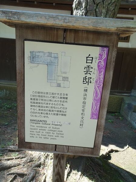 「この建物は原三溪が大正9年(1920)隠居所として建てた数寄屋風建築で明治以降に