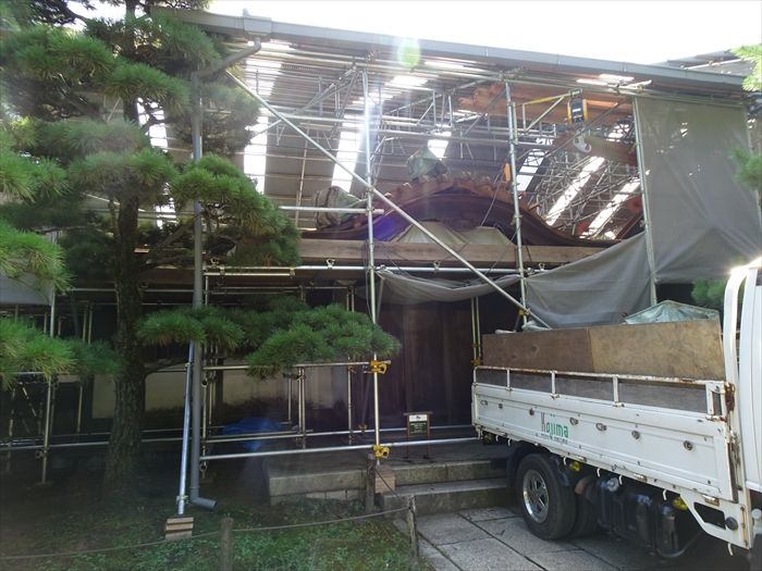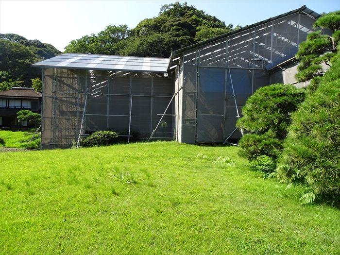 修復工事中の『臨春閣』を横から。