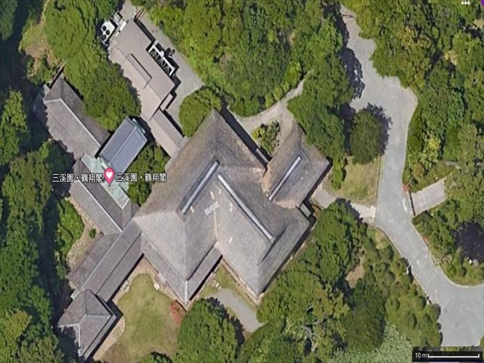 巨大な大きさの『鶴翔閣(旧原家住宅)』をGoogle Earth から。