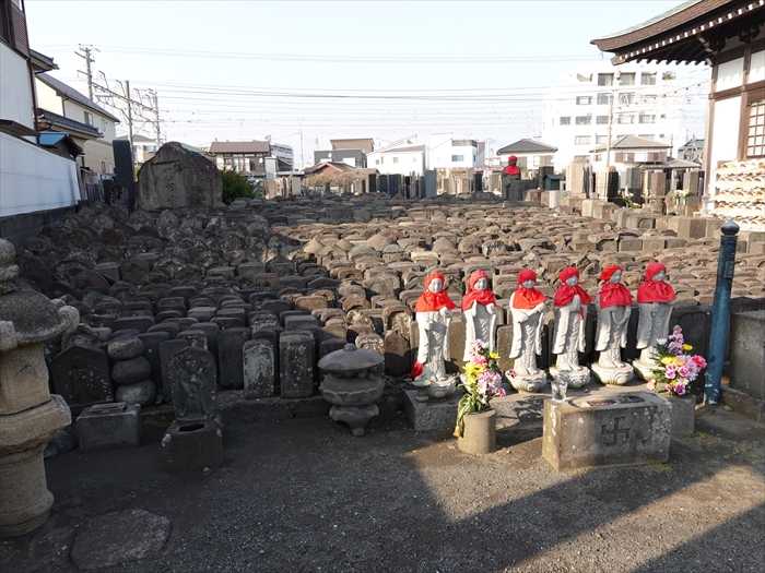 「本堂」に向かって左側に無縁仏・「千体地蔵尊」があり、圧巻な光景。