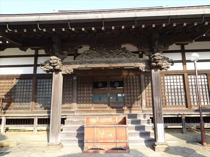 「本堂」前左側に「南無妙法蓮華経 南湖力丸霊」碑。