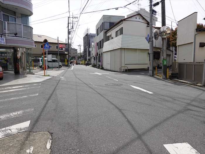 北に進み、東海道へ出る道 (青線) の交わったところで、四つ辻であった。