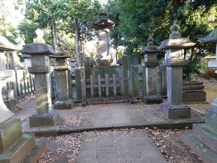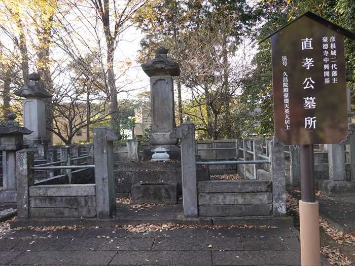 墓所の北西角には、豪徳寺中興開基の直孝墓が位置し、そこから南西に直進したところに