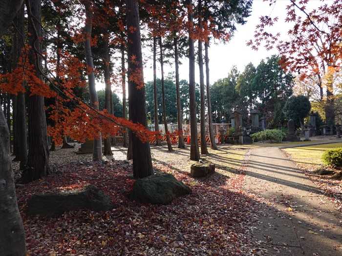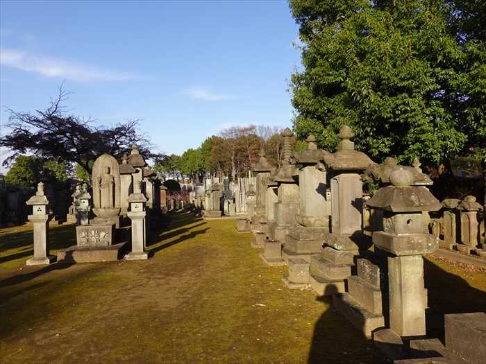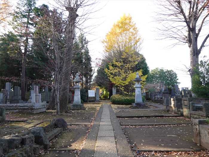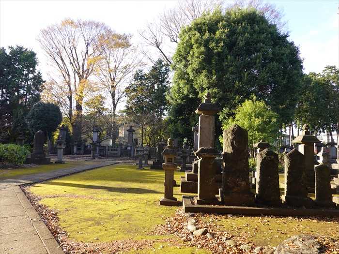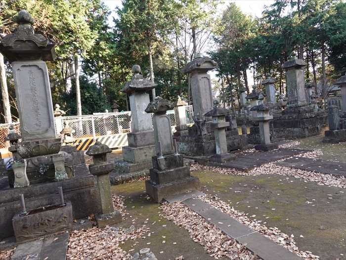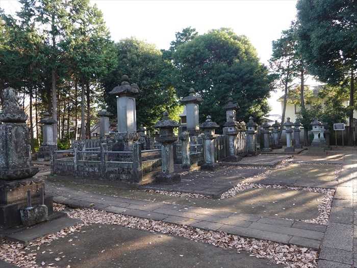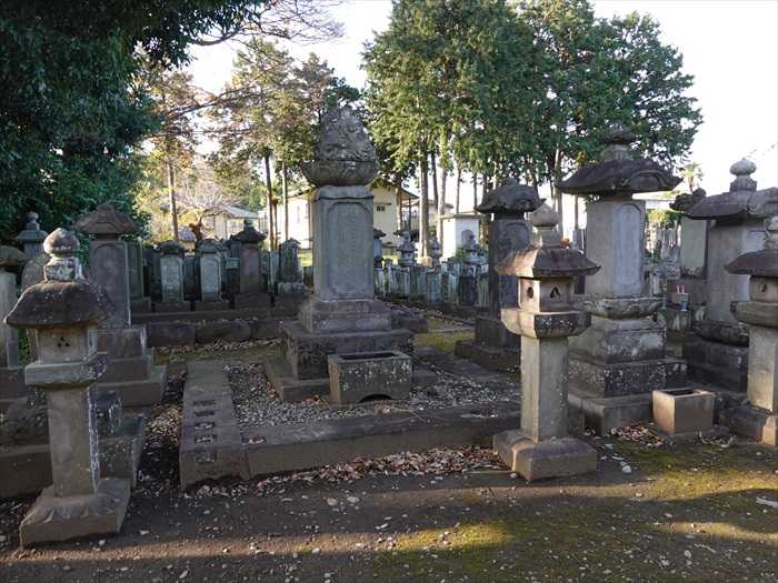 墓石が整然と並び、豪徳寺の伽藍造営に貢献した亀姫(掃雲院般・直孝長女)墓がその中央西側に