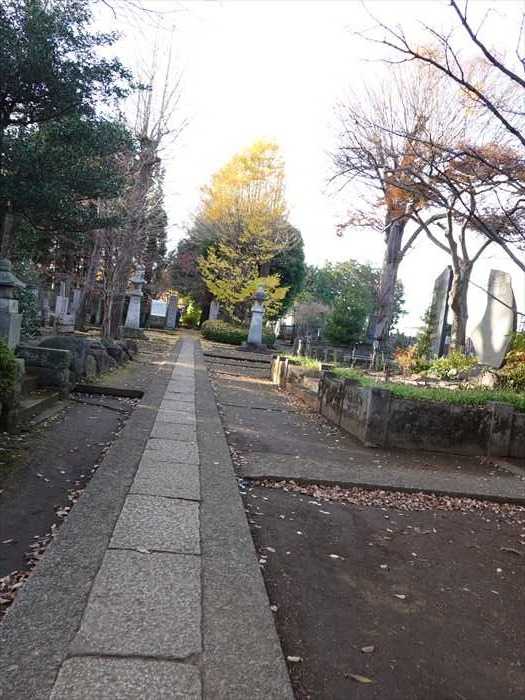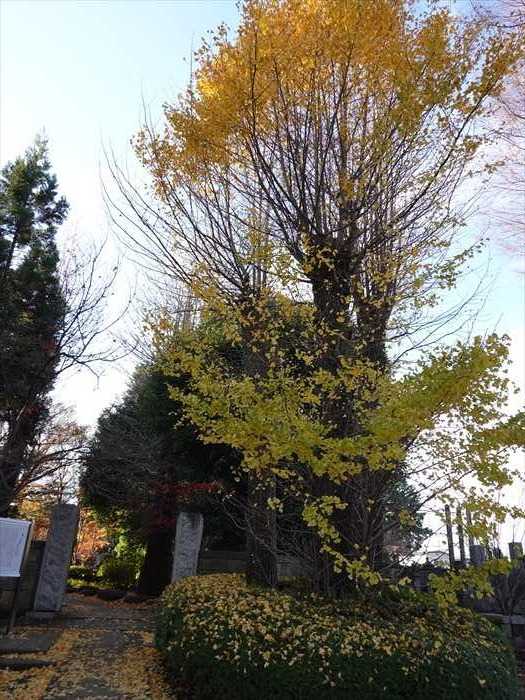 黄葉もエピローグの銀杏の樹の下が墓地への入口。
