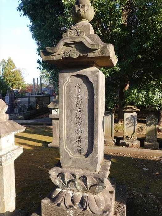 「◯珠院殿◯能了◯大姉」と刻まれた墓石。