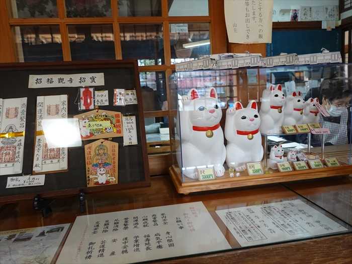 招福猫児の置き物は寺務所で購入することが可能で、2センチほどの豆サイズから30センチ