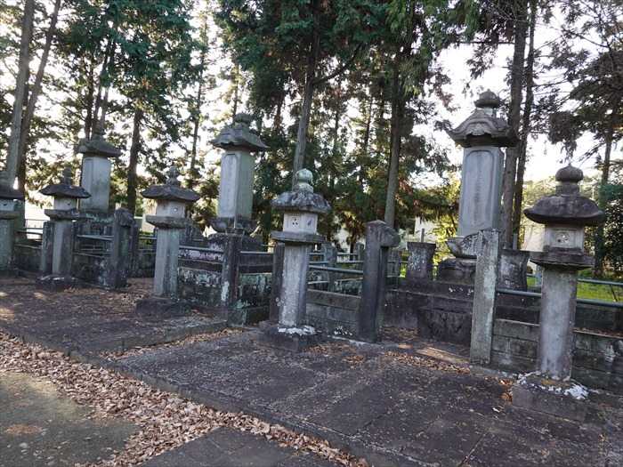 亡くなった藩士とその家族の墓石も据えられている。これらを合わせると、墓所に所在する墓石の