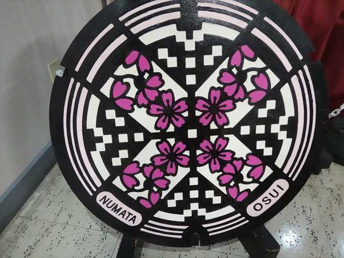 沼田市の汚水用のカラーマンホール。