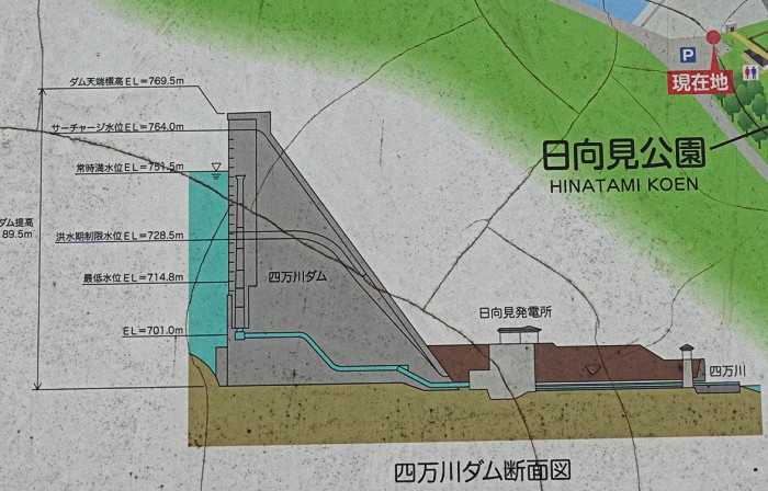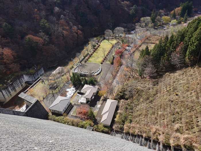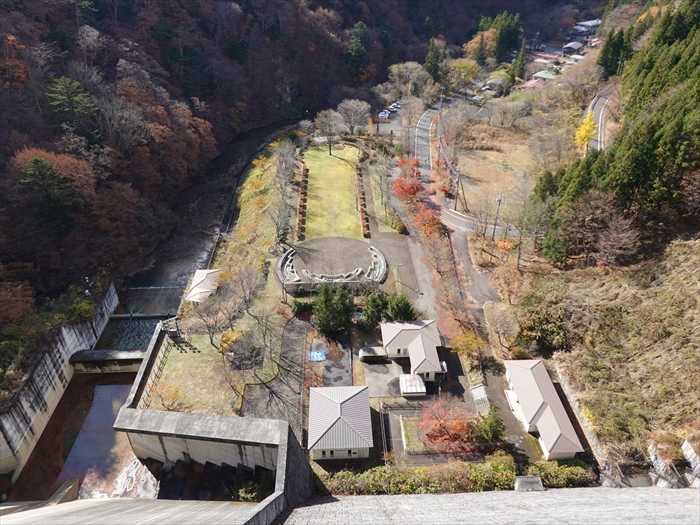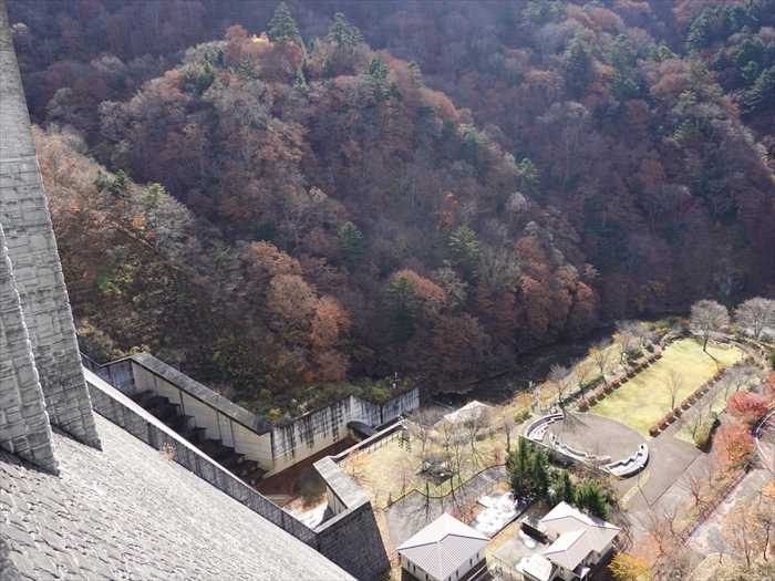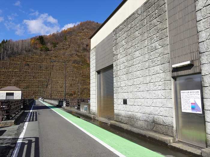 ダムの下の「群馬県企業局 日向見発電所」を望む。