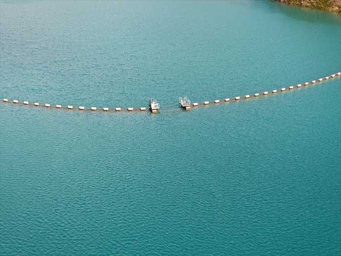 ダムの放流設備に入り込まないようにしているもので、「網場」あるいは「流木止め」と呼はれ、