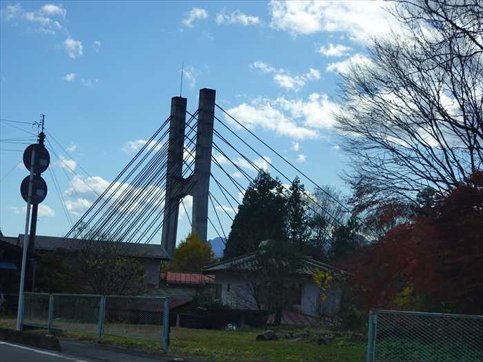 「四万川」に架かる「上妻橋」の斜張橋を見る。