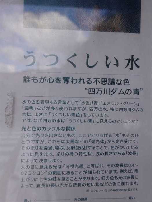多く使われますが、四万の水、特に四万川ダムの水は、まさに「うつくしい青色」をしています。