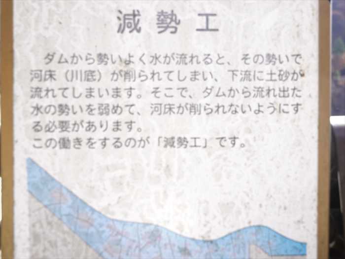 しまいます。そこて、ダムから流れ出た水の勢いを弱めて、河床が削られないようにする