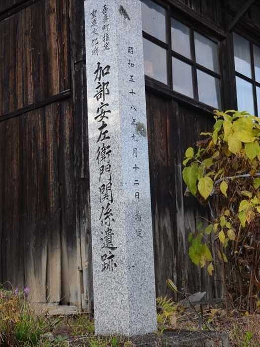 加部安左衛門関係遺蹟 昭和五十八年九月十二日 指定 」と。