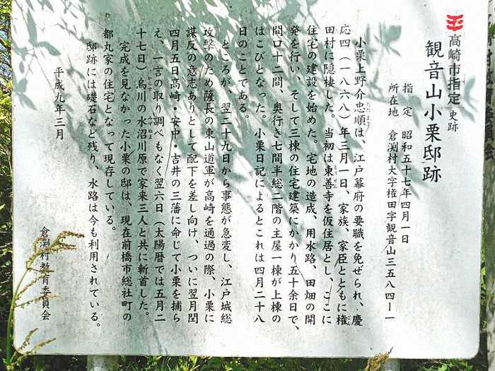上州権田の里 幕末の史跡 小栗上野介埋骨の地 」と。