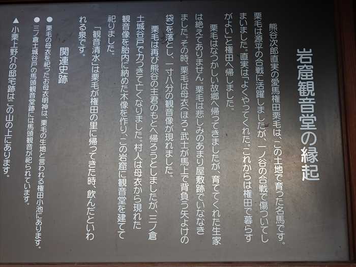 栗毛は再び熊谷の主君のもとへ帰ろうとしましたが、三ノ倉土城谷戸でカつきて亡くなりました。