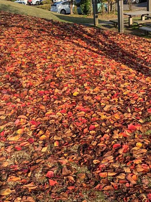 「もみじむしろ」と呼ぶこの言葉は、落ちた紅葉が地面を埋め尽くす光景を「筵(むしろ)」