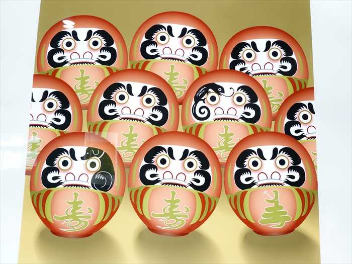 写真だと確認しづらいが、一見普通に見えるだるまの中には、蛇を始めとする動物が描かれているのであった。