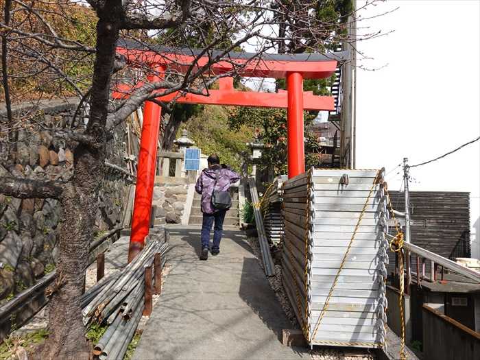 国道135号の伊豆山郵便局の西から南西に下り、さらに狭い石段を複雑に曲がりながら