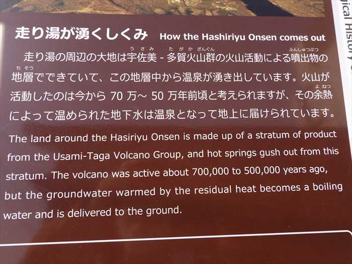 走り湯の周辺の大地は宇佐美-多賀火山群の火山活動による噴出物の地層でできていて、
