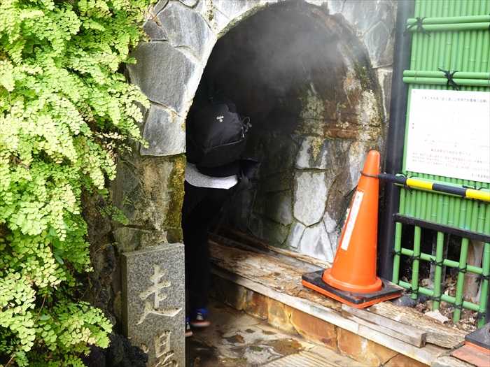 幅約5尺(1.5m)、高さ約5尺3寸(1.6m)の隧道の奥に「走り湯」の湯口がある。