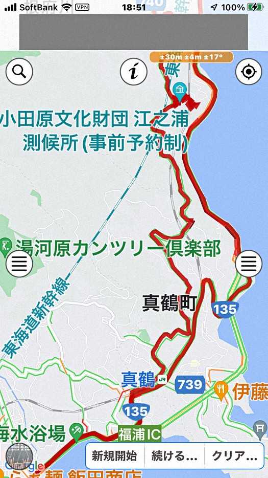 熱海から目的地の「<小田原文化財団 江之浦測候所」への走行ルート。