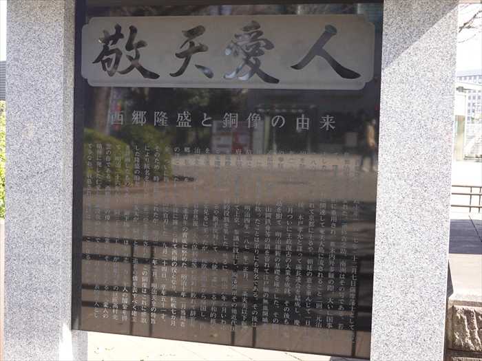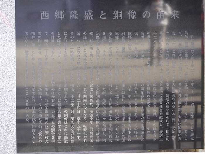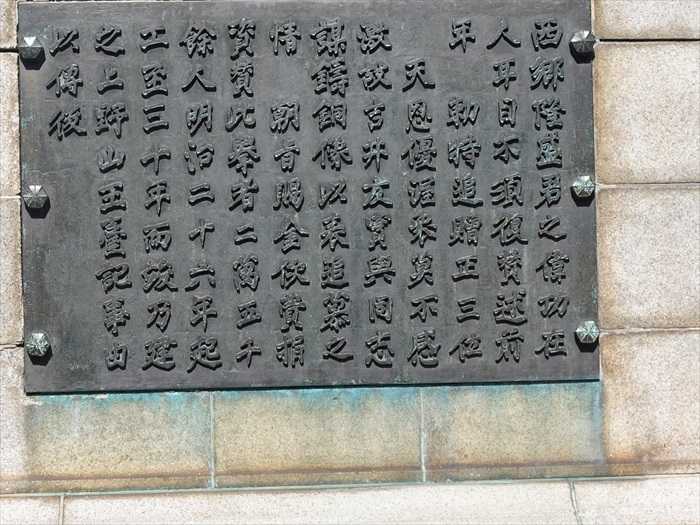 西郷隆盛像の銘板。