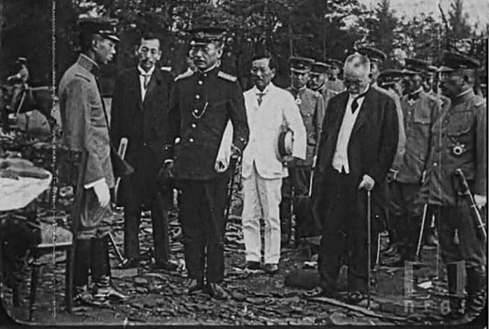 上野山上での視察中に説明を聞く 摂政宮(後の昭和天皇) の写真をネットから。