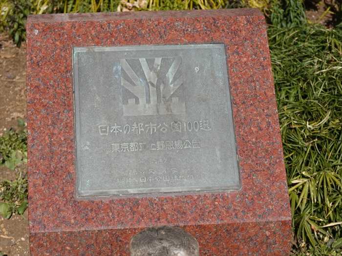日本の都市公園100選 東京都立上野恩賜公園 」碑