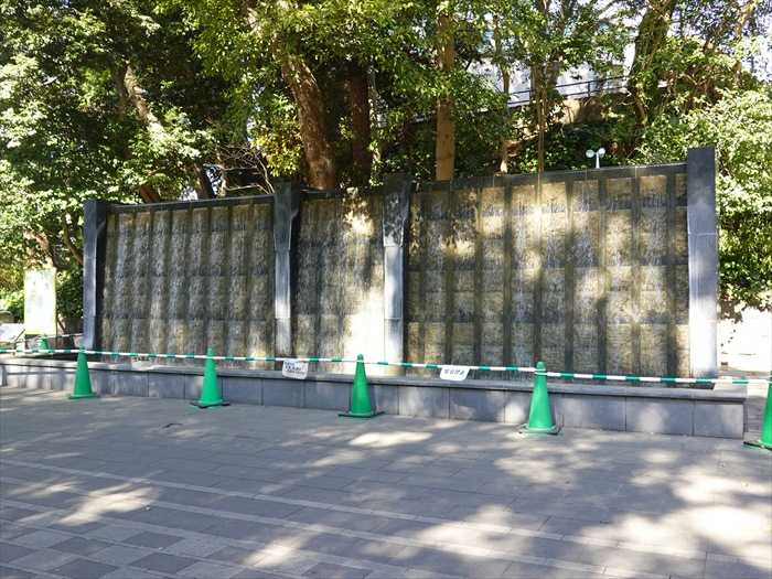 この壁泉は、かってこの地にあった「黒門」の姿を表現しています。