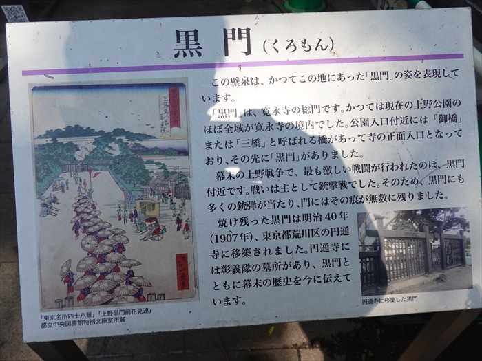 「黒門」は、寛永寺の総門です。かつては現在の上野公園のほぼ全域が寛永寺の境内でした。