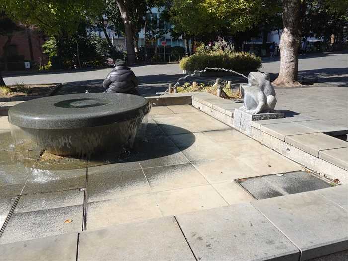 噴水が、蛙の口から出ていた。この時は、円形の中心ではなく、手前に噴出されていた。