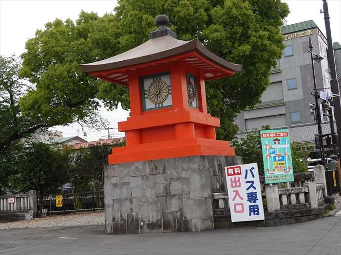 静岡県道76号線・大社通り沿いにあった大きな朱の「大灯籠」(右)。