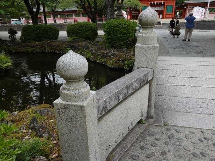 前方に「 鏡池 」に架かる「 太鼓橋 」が。