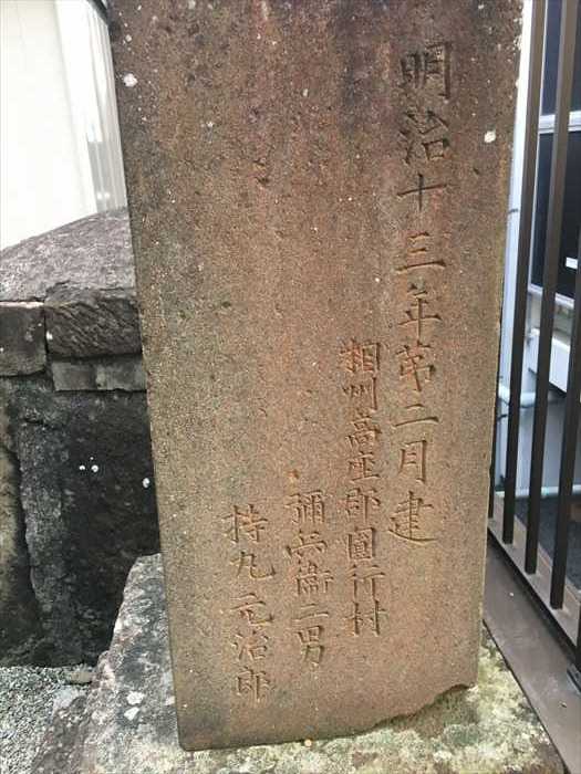 明治十三年?二月建 相州高座郡圓行村 」と。
