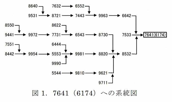 6,174に到達するのかを系統図で示したのが図 1である。これで、すべての 4桁の自然数が