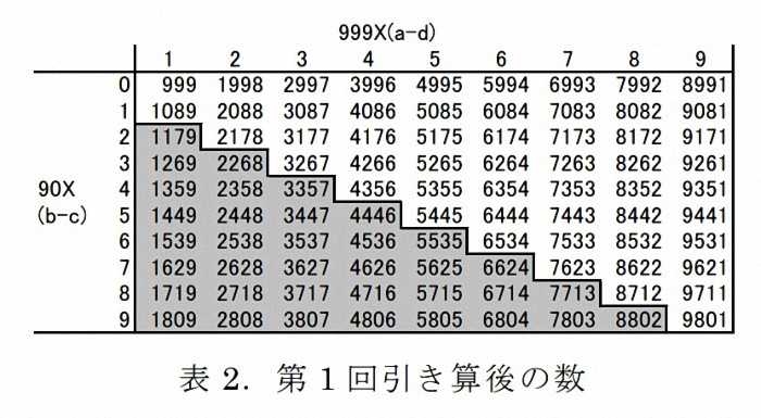 さて、a-dは 1 と 9 の間の数値をとり、b- cは 0 と 9 の間の任意の値をとり得るから、