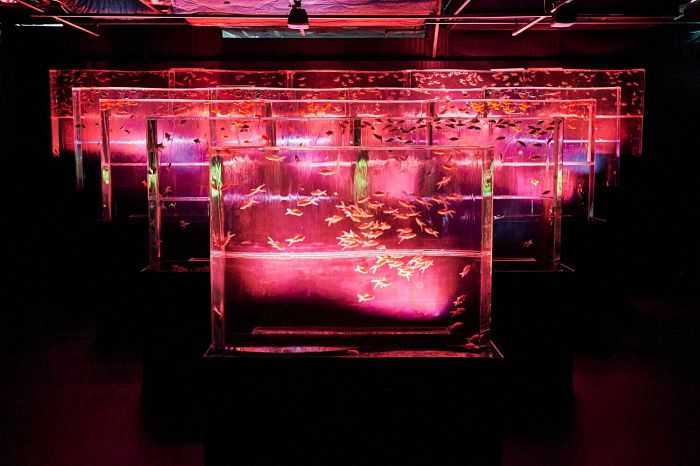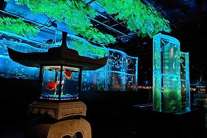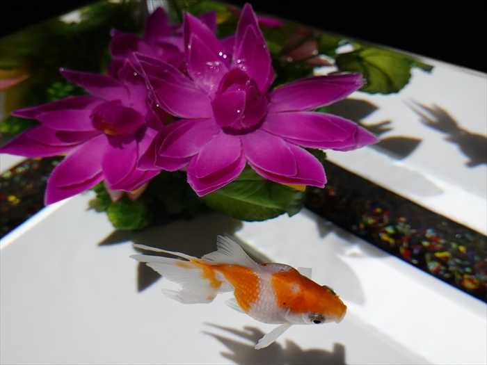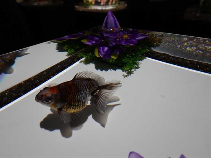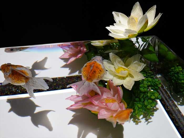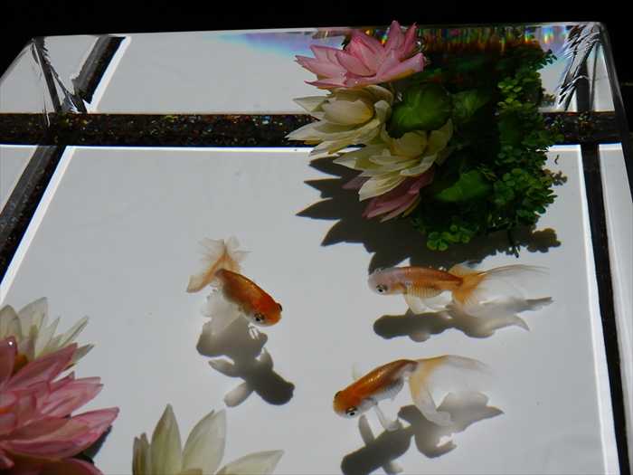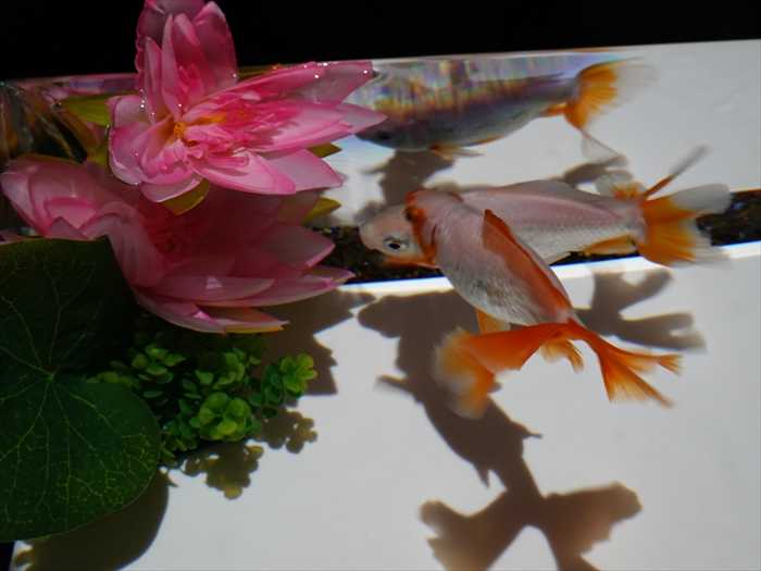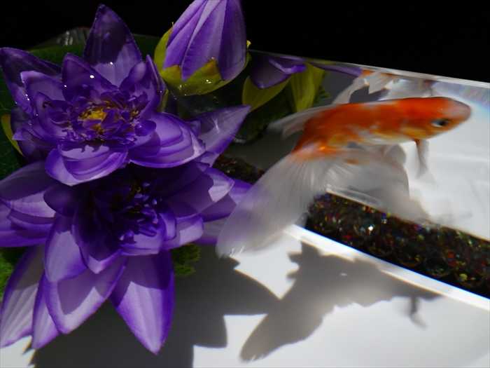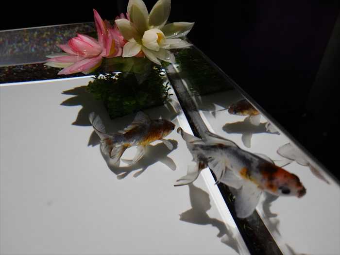 灯籠の火袋部分が水槽となり、そのなかを泳ぐ金魚はまるで灯火のようにゆらめきくのであった。」